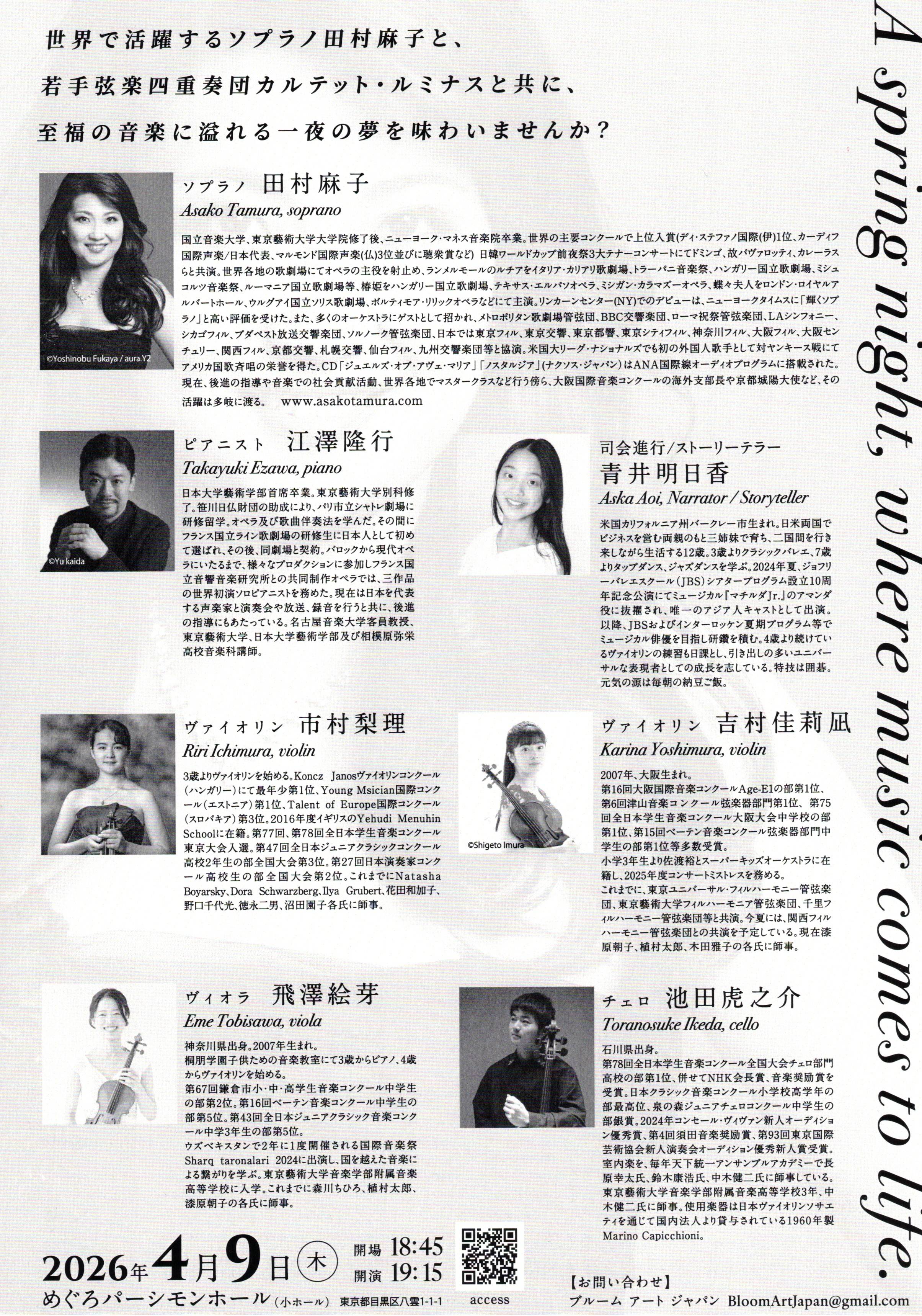 (Sop 遠藤 紗千、吉見 真帆 Ten 駿河 大人 Pf 御園生 瞳)